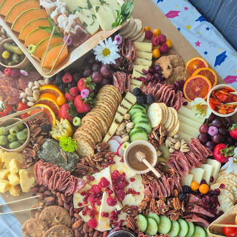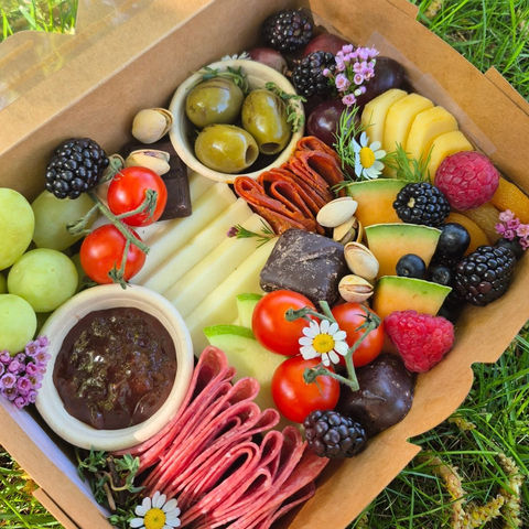 The sweetest gift for a smaller setting - the Graze Box includes all the classic goodies wrapped up, to go! An edible gift for - birthdays, holidays, office meetings, dinner parties, girls' night, gifts for teachers or your boss, or something for the workplace to enjoy! Boxes can accommodate 2 to 10 people. They can be themed, tailored and customized to order! Garnished with herbs and tied up in a ribbon.